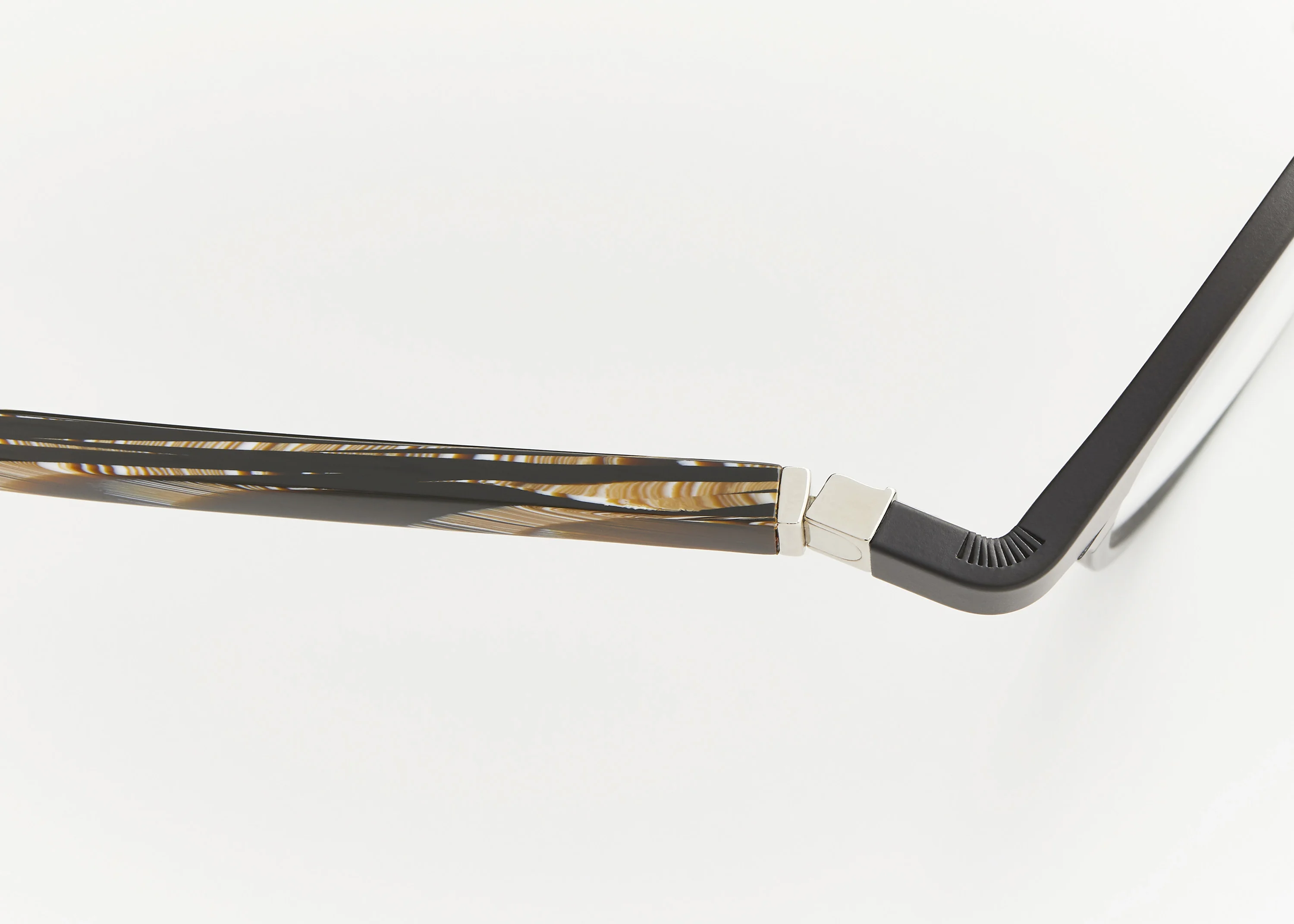 A vibrant, colourful freshness emboldens this bicolour model, reinventing the men's wardrobe. This led us to use creatively beautiful colour harmonies – such as a black and green highlighted on the front, paired with a horn temple.