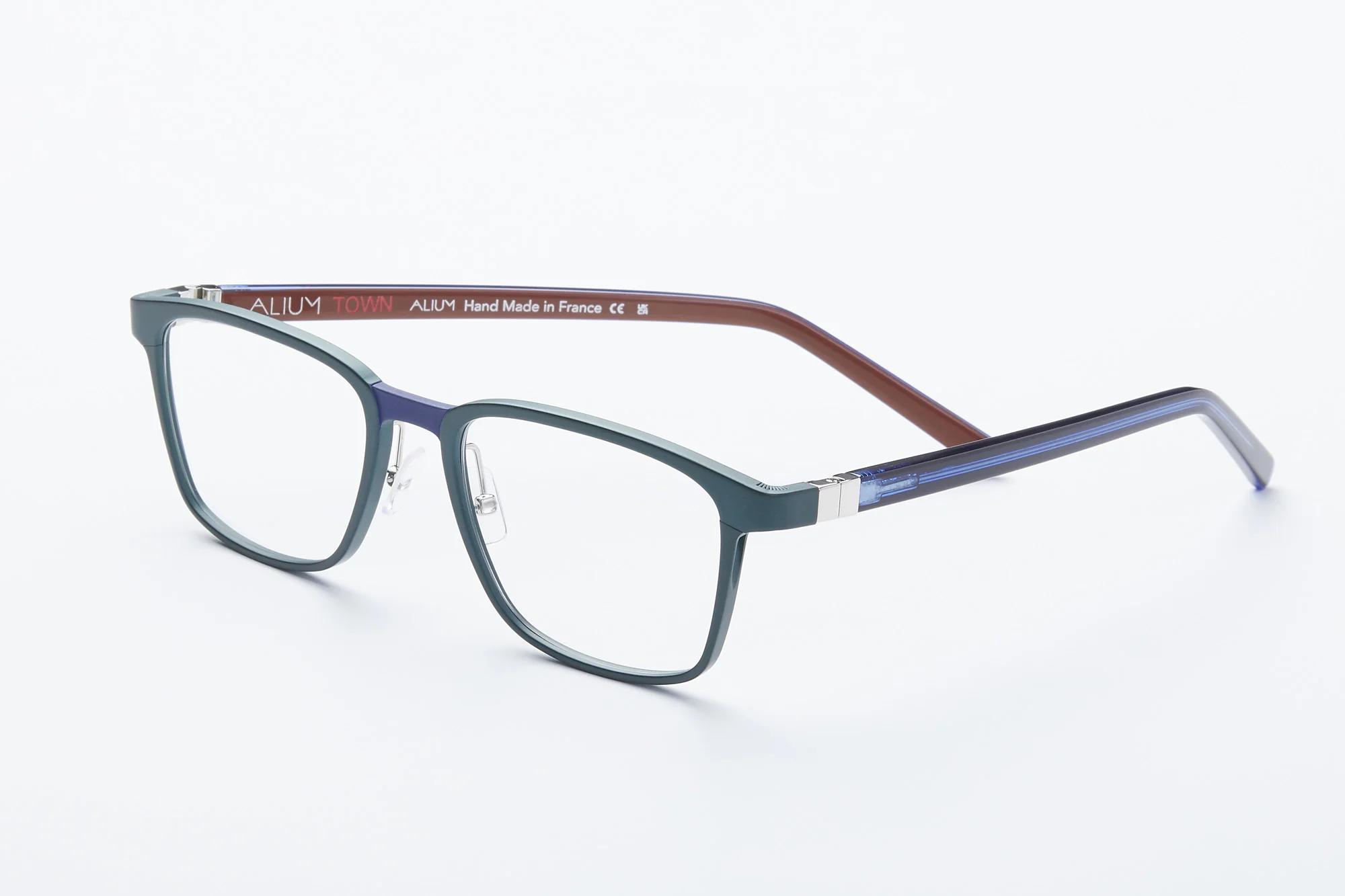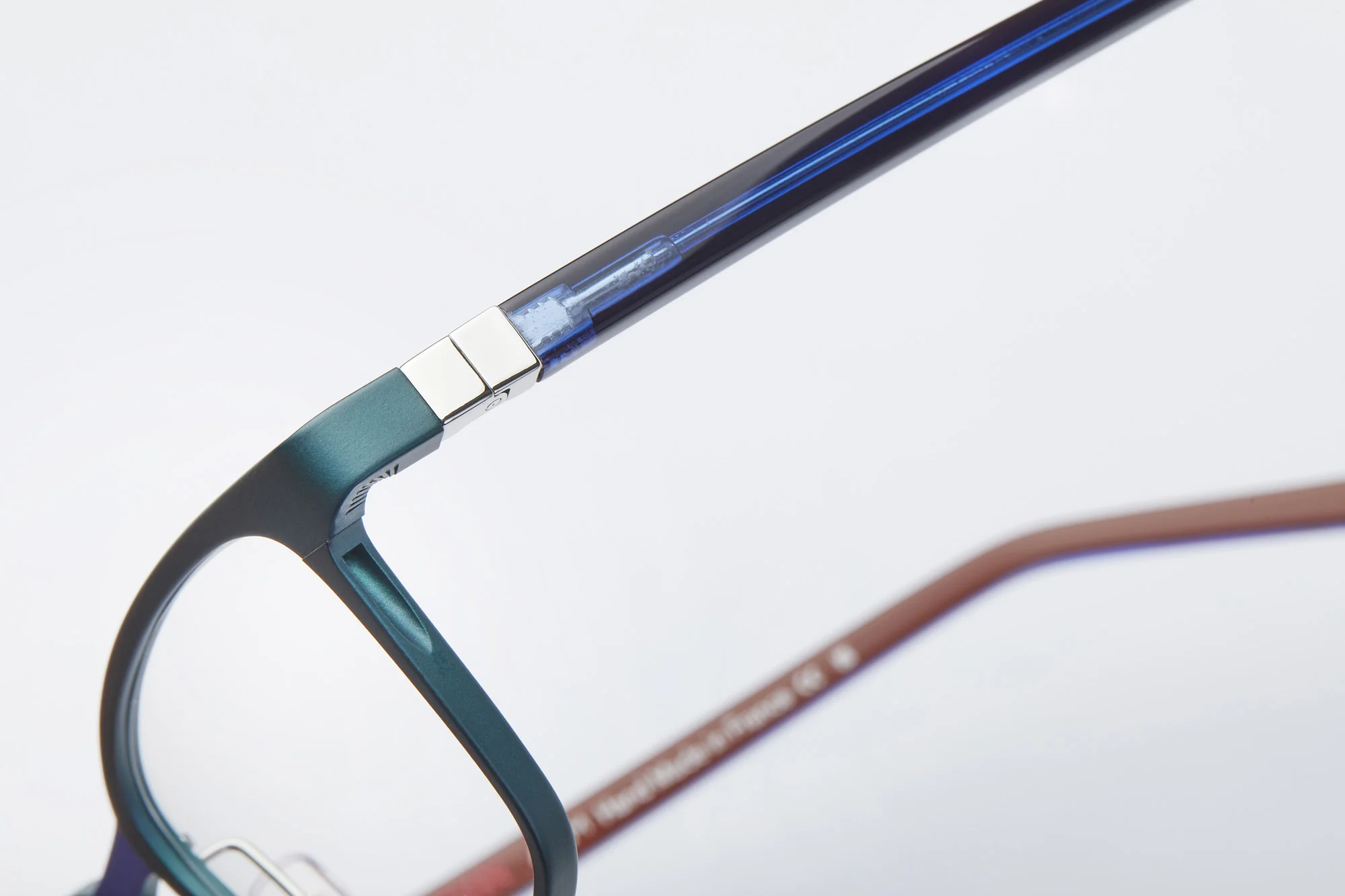 This design is made in France with a classic hinge – the ALIUM brand signature. The bridge has a milled recess to better highlight the colour. Finally, we achieved the endpiece milling with an ALIUM-patented technique.