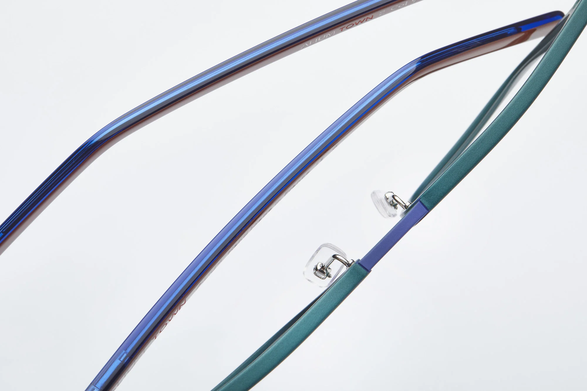 Urban chic, the TOWN range is bold in colour and unafraid to reinvent masculine eyewear: a point of energy on the milled recessed bridge tensions the two circles with colour... Or how to play with two-tone to give everyone a vibrant, sporty look!